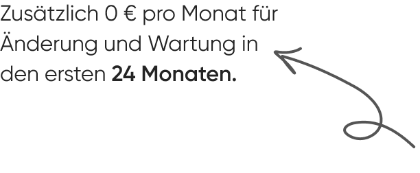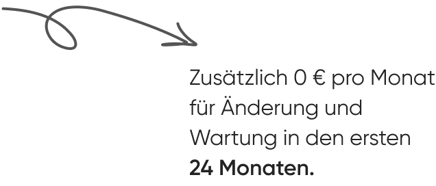 Domain in den ersten 24 Monaten. Ab dem 25. Monat 59 € pro Monat für Hosting, Domain, Wartung und unseren Service für kleine Änderungen.